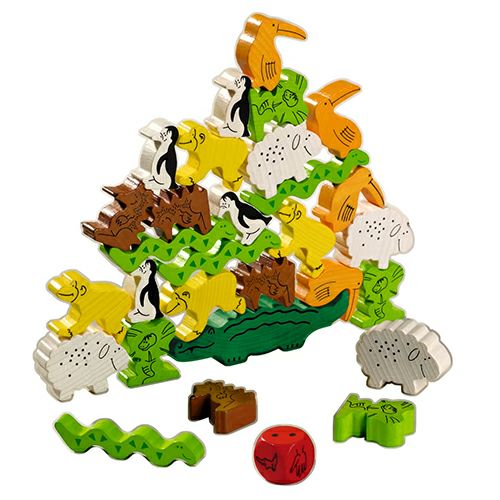 動物の形状は不規則で、バランスを取るのが難しく、手先の器用さと空間認識力が試されるゲームです。コマを落としてしまうとペナルティがあり、最初に自分のコマをすべて積み終えたプレイヤーが勝利となります。
