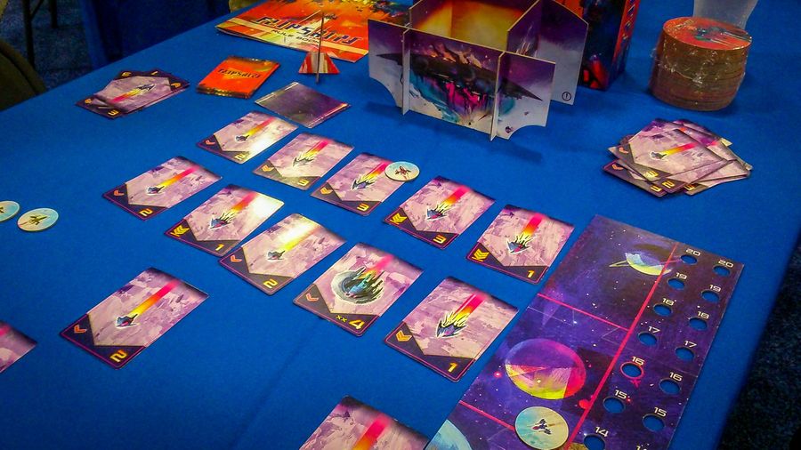 プレイヤーは自分の宇宙船トークンを指ではじき、敵のカードに着地させてダメージを与えます。敵カードには耐久値があり、複数回のヒットが必要なものも存在。