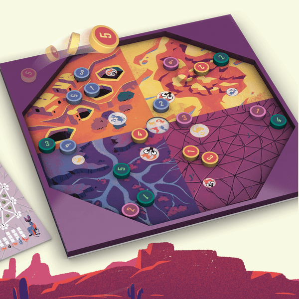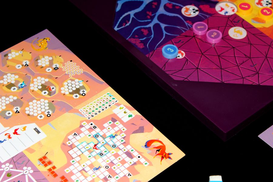 エリアごとに異なる得点ルールがあり、物理的な操作と紙ペンによる戦略性が同時に楽しめるのが特徴です。